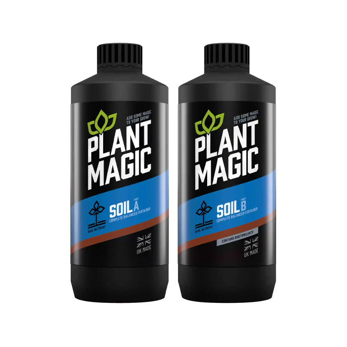 Plant Magic Plus Soil A&B is a highly concentrated 2-part premium mineral-based plant food for use during the plant’s growth and flowering phase. This complete, balanced fertiliser is formulated for use with soil.